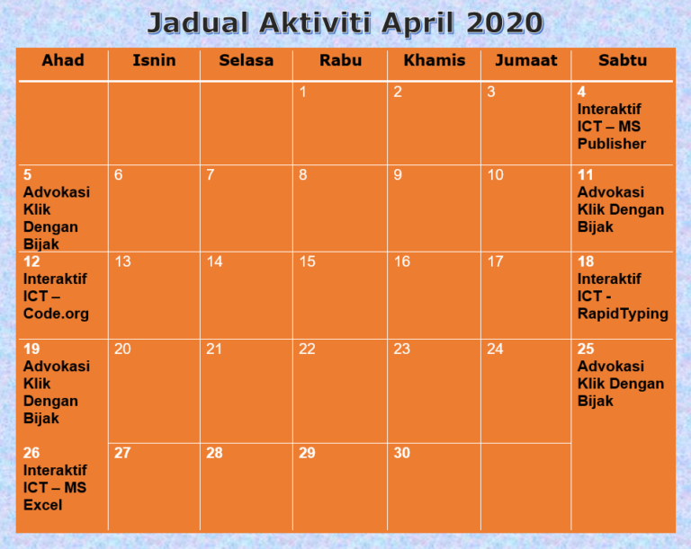 Jadual Aktiviti April 2020