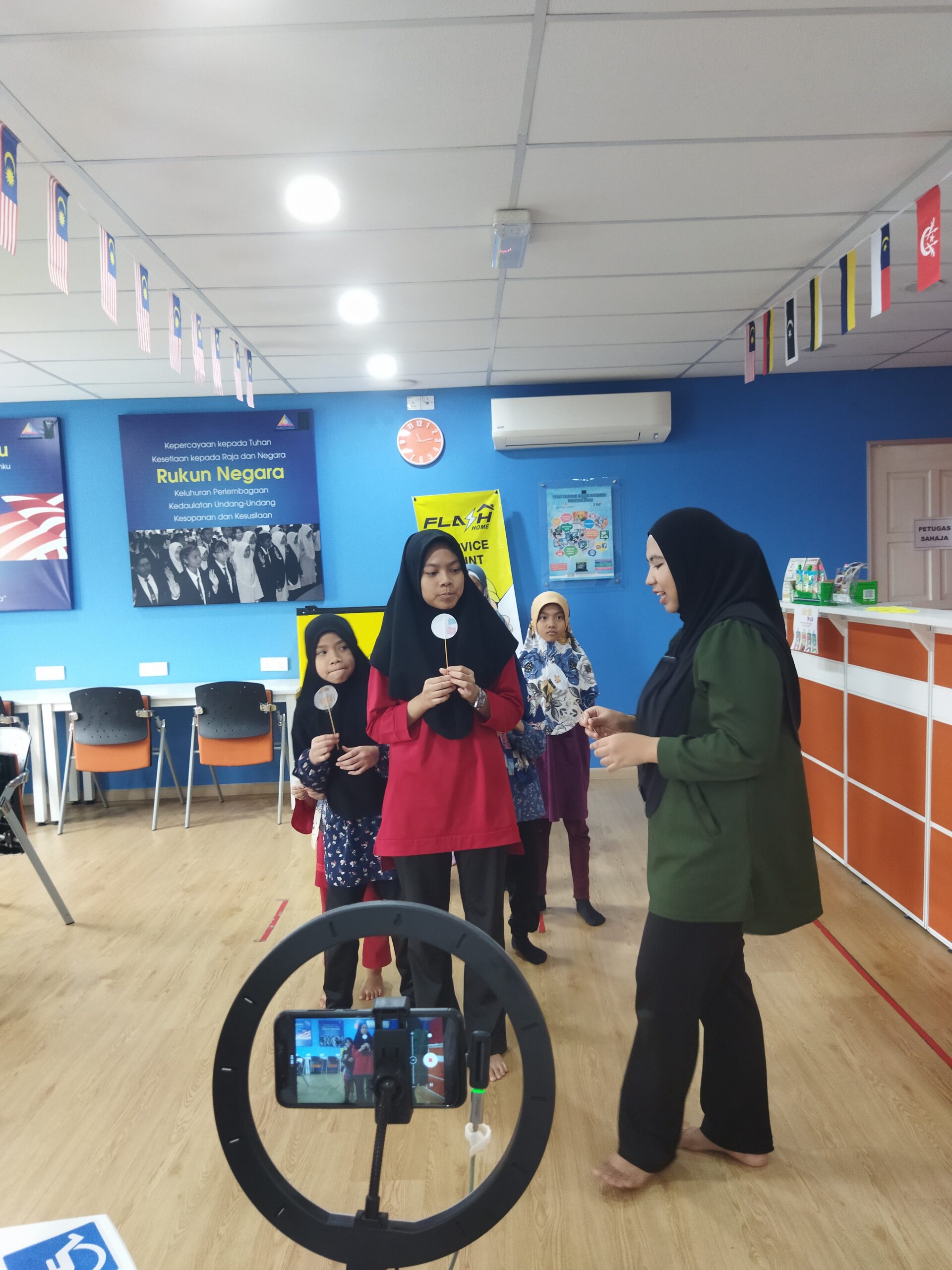 Aktiviti : Kanak-kanak di ajar cara membuat thaumatrope dengan menggunakan kertas dan lidi